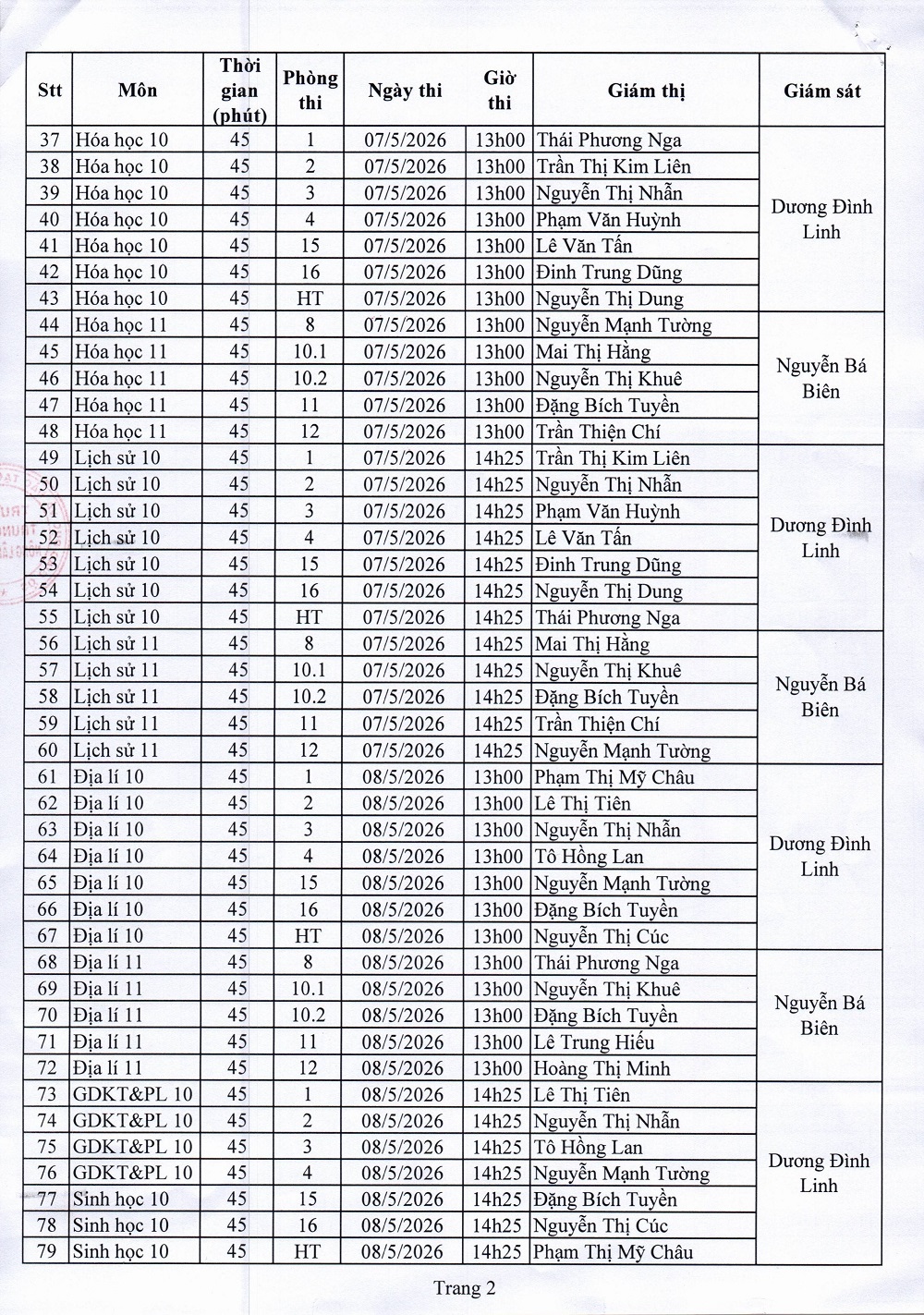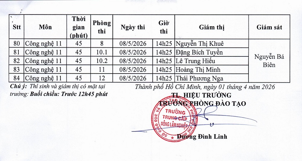 Danh sách GV hỗ trợ gác thi văn hóa K10, K11 học kỳ II năm học 2025-2026