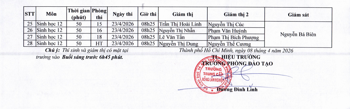 Lịch thi văn hóa HK2, khối 12 năm học 2025-2026