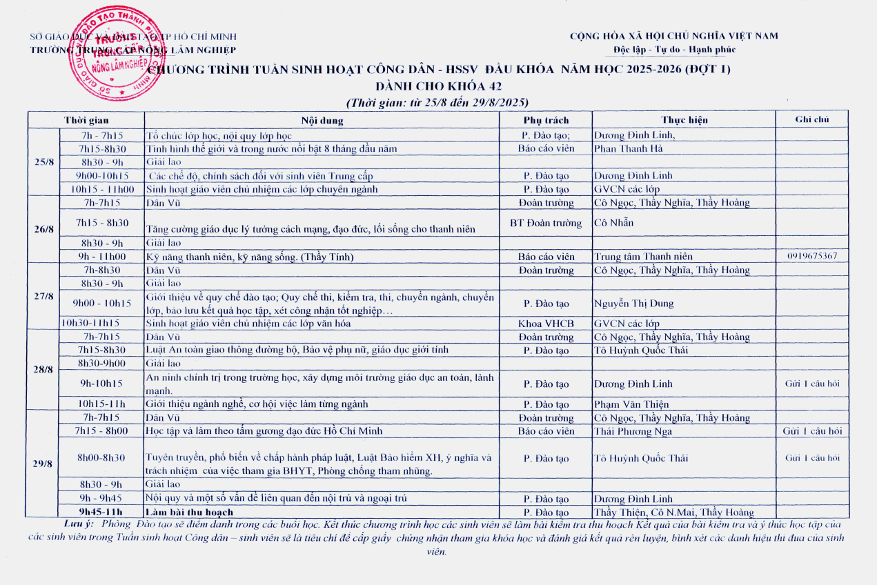 Chương trình sinh hoạt công dân - HSSV đầu khóa (khóa 42, đợt 1)