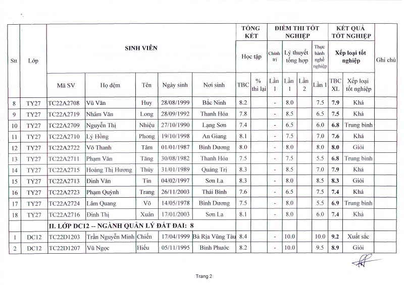 Danh sách xét tốt nghiệp đợt 2 năm 2024