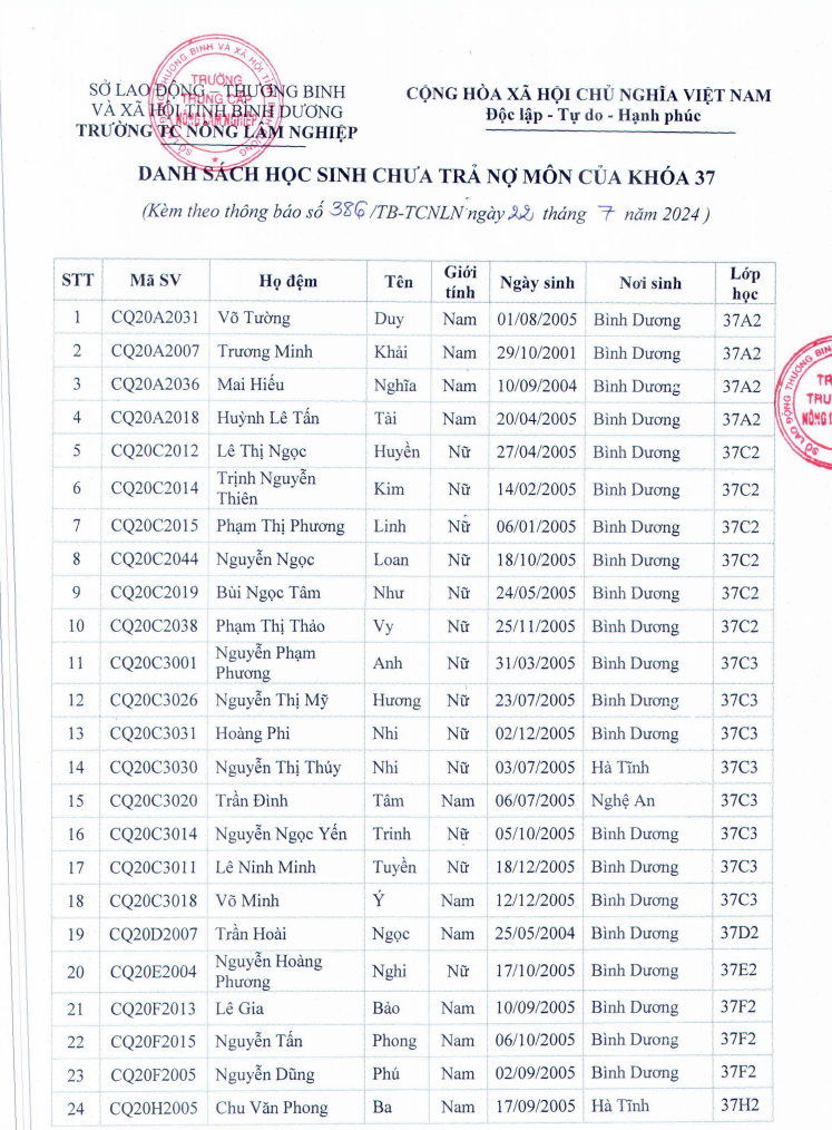 Danh sách xét tốt nghiệp đợt 2 năm 2024