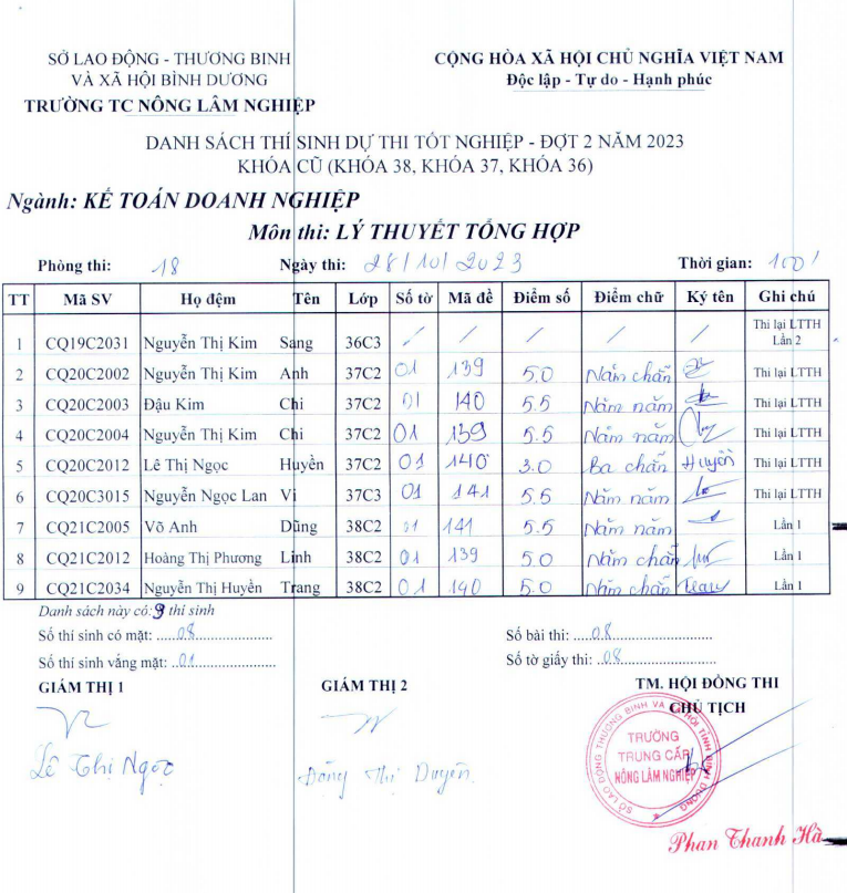 Danh sách giáo viên hỗ trợ gác thi văn hóa giữa kỳ 1 năm học 2023-2024