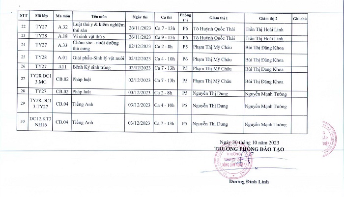 Lịch thi lại học kỳ năm học 2022-2023 (cập nhật)
