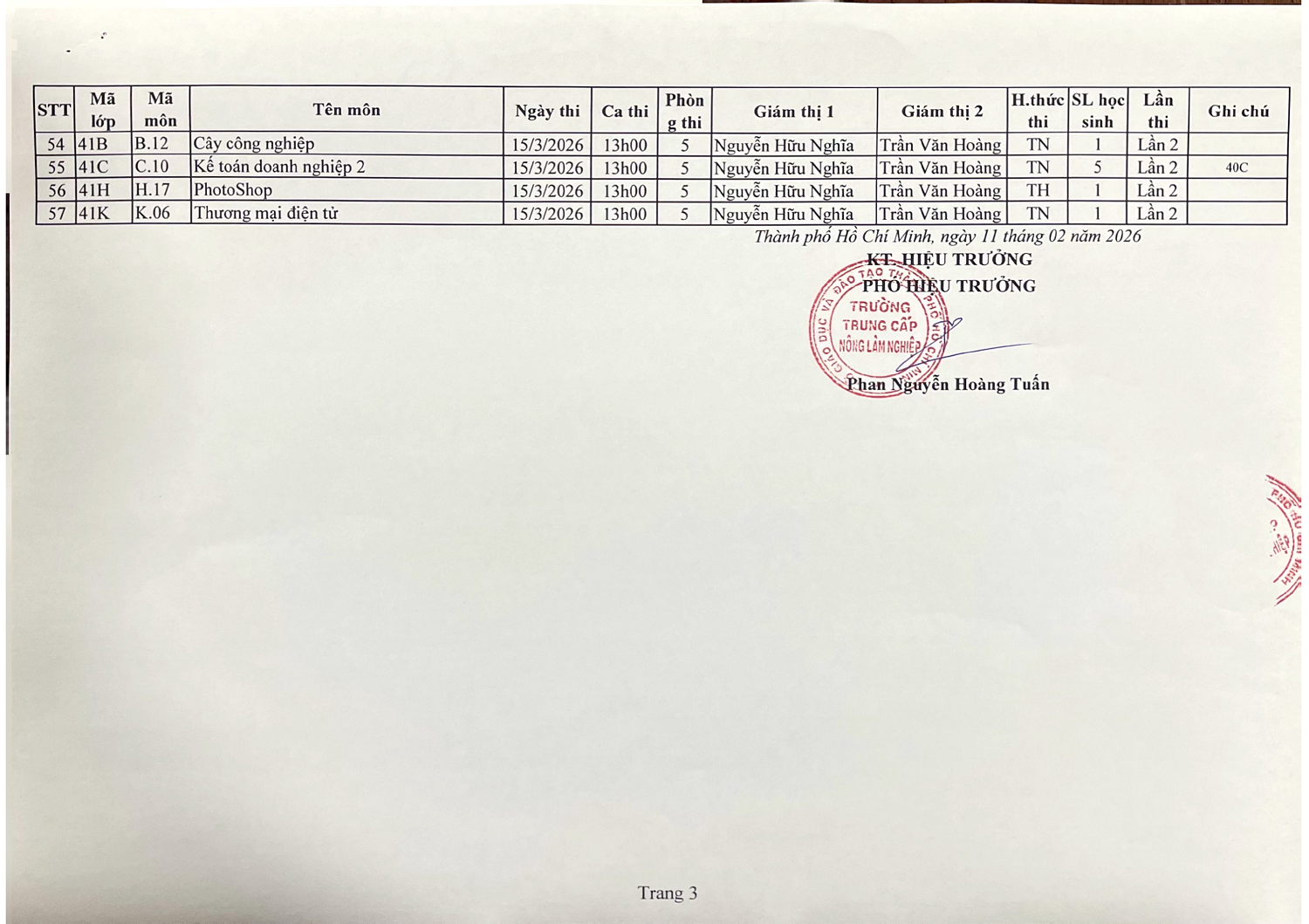 Lịch thi đợt 3 năm 2026 các lớp chính quy và vừa làm vừa học