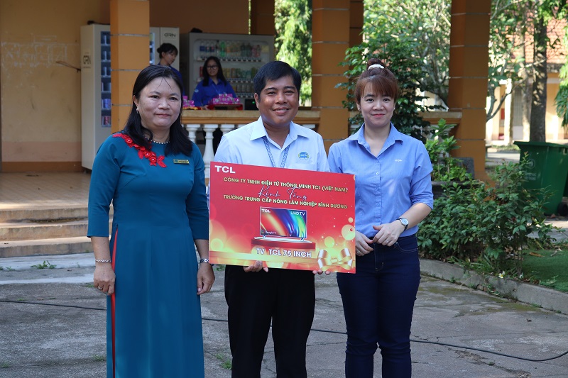 Đại diện TCL tặng 01 tivi cho Trường TC Nông lâm nghiệp