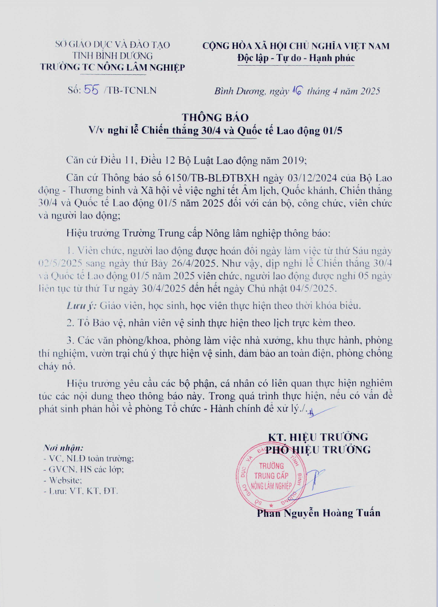 Email: tc-nonglam@sgdbinhduong.edu.vn
